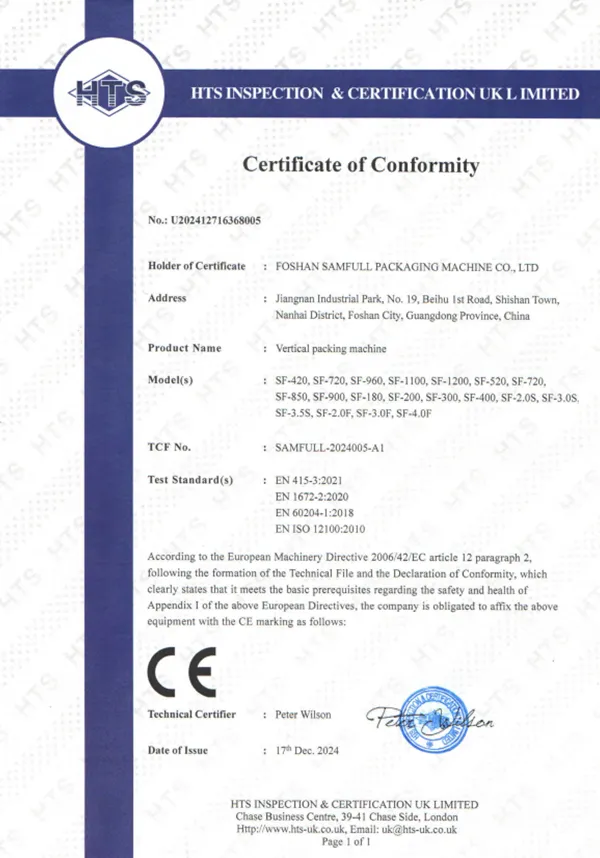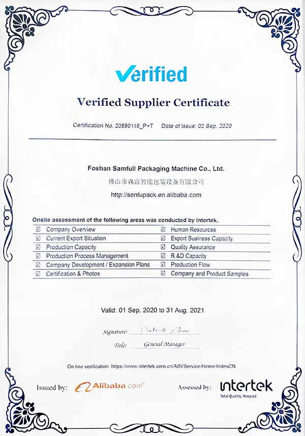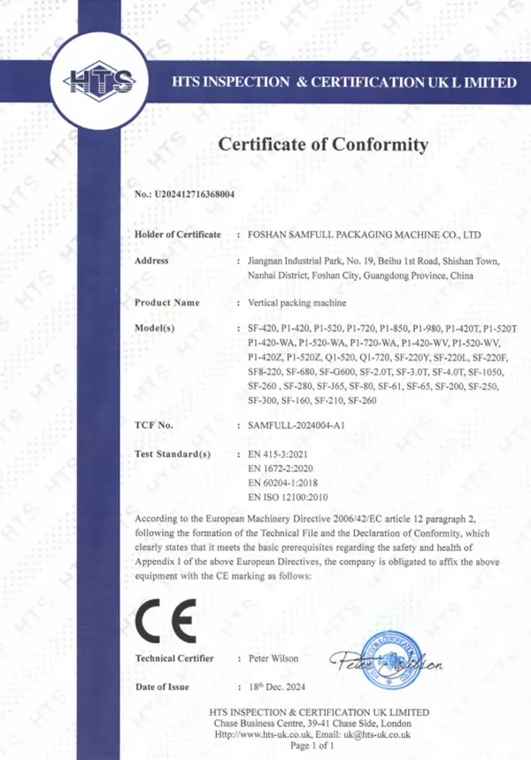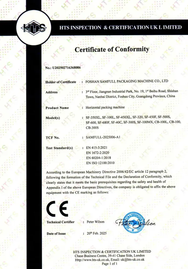 Over the years, Samfull has continuously invested in technological upgrades and product innovation, resulting in significant improvements in product performance and quality. The company has earned strong recognition and long-term trust from customers both domestically and internationally. Recognized by industry professionals as one of China’s fast-growing packaging machinery manufacturers, Samfull has also obtained CE certification, meeting European Union safety and quality standards.