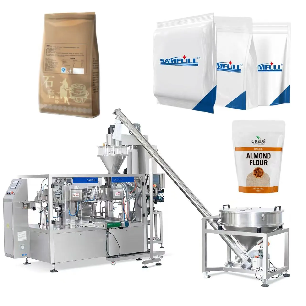 This premade pouch rotary powder filling and sealing machine is suitable for packaging a wide range of fine and free-flowing powder products, including food powders, beverage powders, seasoning powders, nutritional powders, and other similar materials. The machine supports multiple pouch types such as stand-up doypack pouches, zipper pouches, and pillow-style bags, offering flexible packaging solutions for different market requirements. It is widely used in food processing plants, powder product manufacturers, and automated packaging lines where accurate dosing, reliable sealing, and stable operation are required.